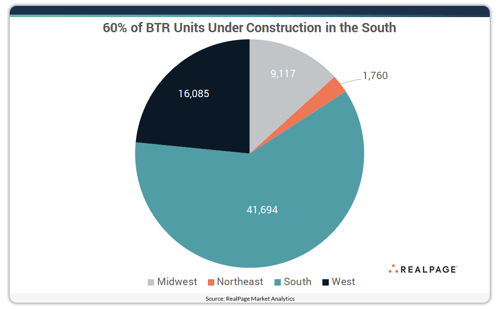 The South leads the country with approximately 41,700 build-to-rent units currently under construction, which are expected to be finished by the end of 2028.