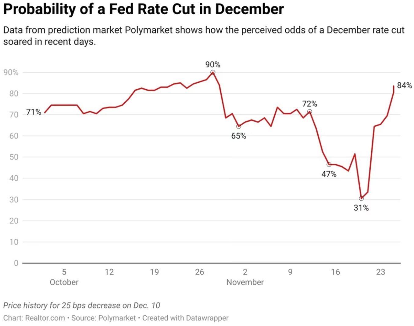 Fed officials signal support for a December rate cut as odds jump to 85% link