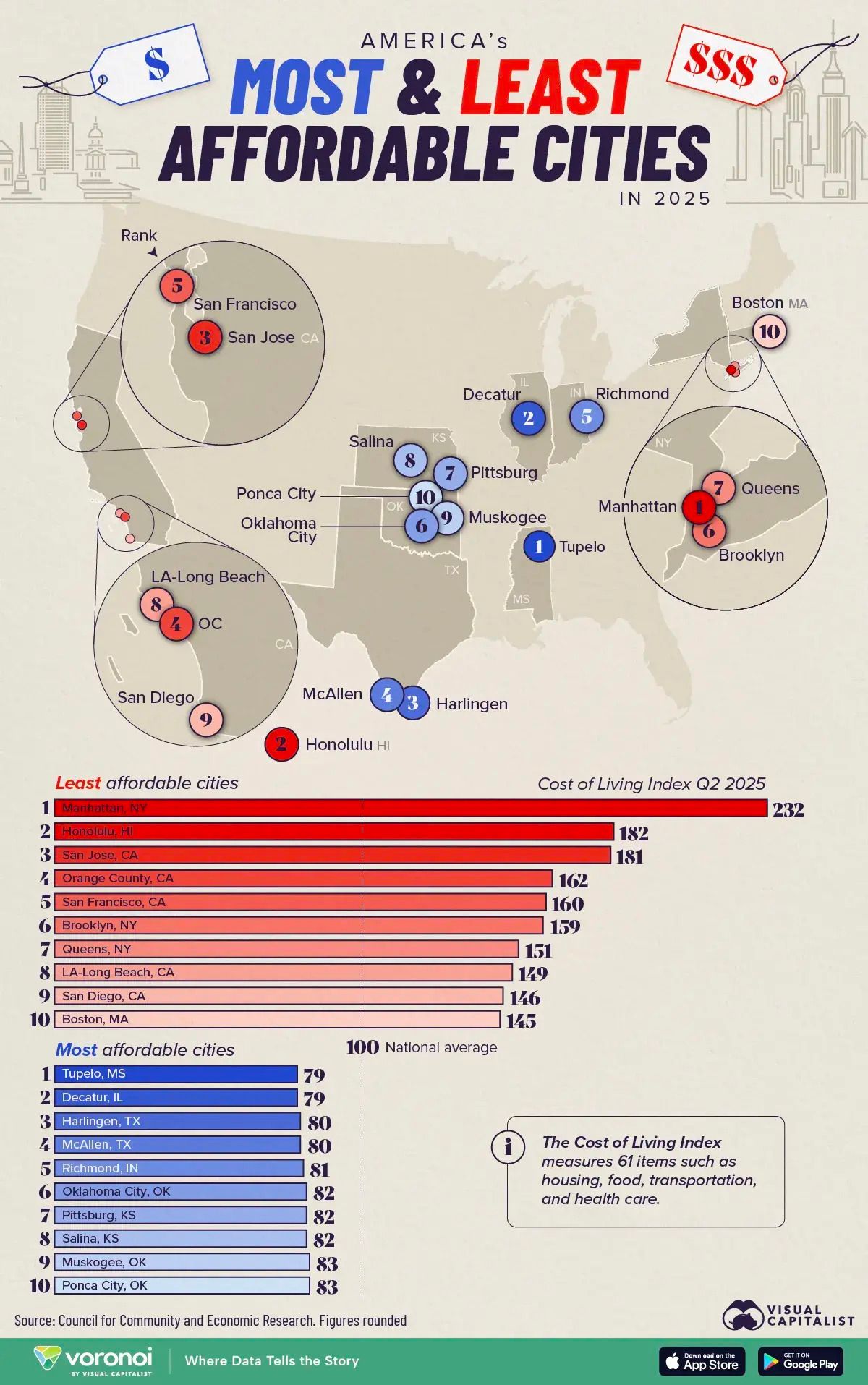 Mapped: America’s Most and Least Affordable Cities in 2025