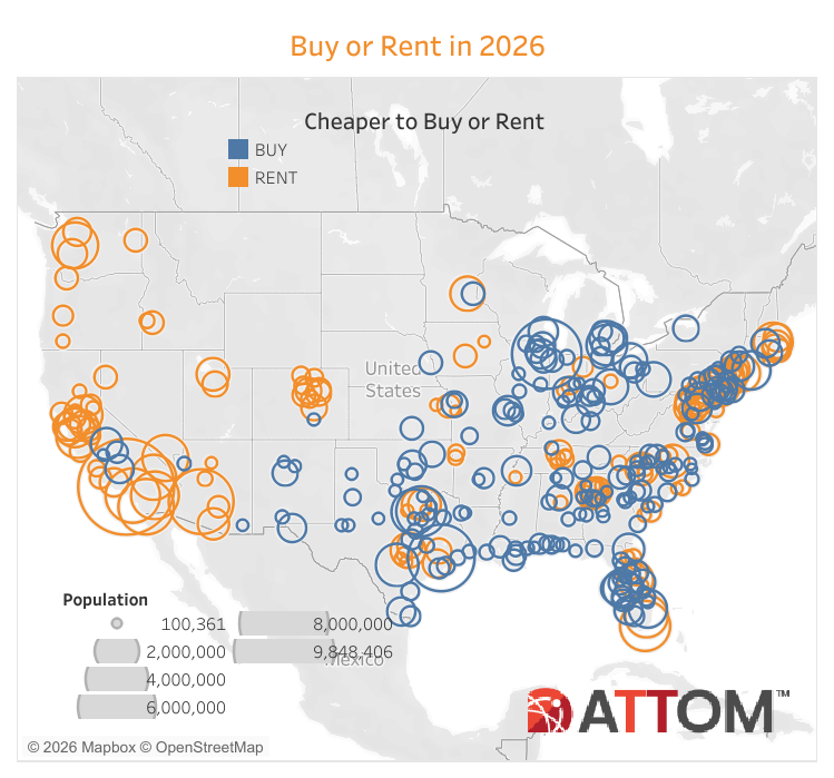 Owning a home is currently cheaper than renting a three-bedroom place in nearly 58 percent of the counties studied across the U.S.